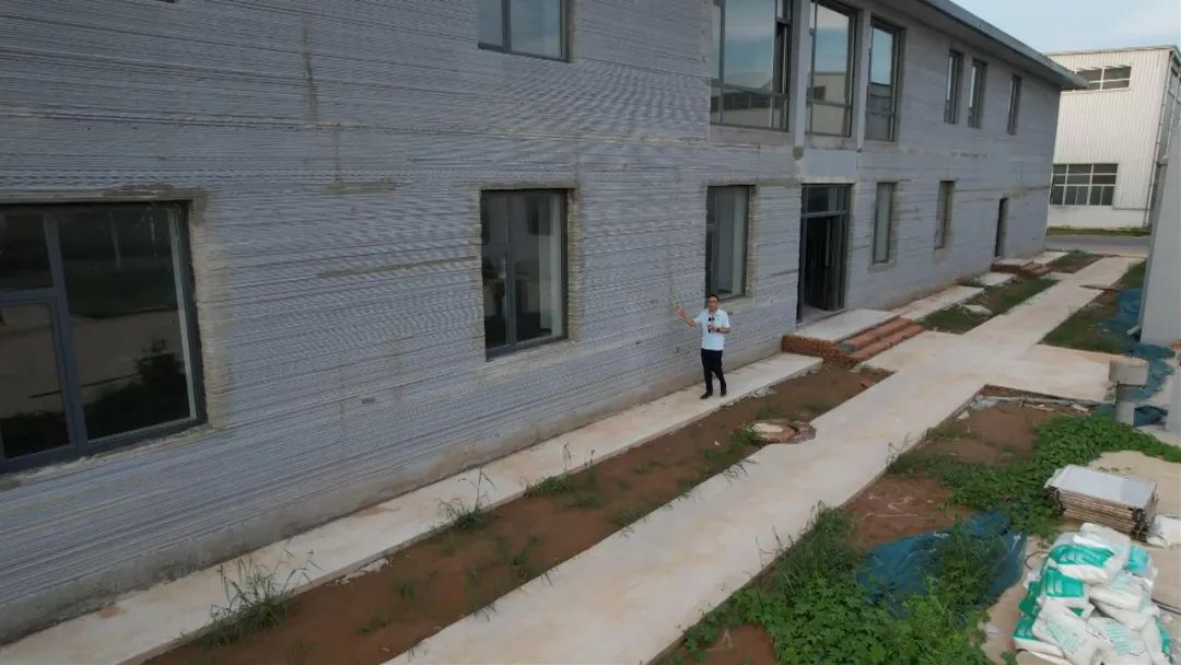 我身后这个建筑面积 2000 多平米的二层小楼是用 3D 打印技术一体成型的,这也是我国目前最大的 3D 打印建筑。